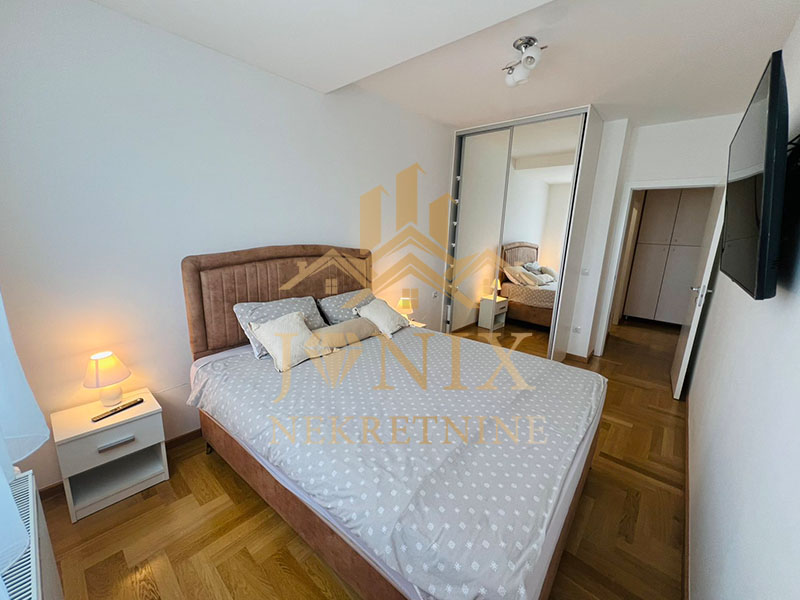- Stan je potpuno i moderno opremljen sa novim namještajem i uređajima (mašina za veš i sušilica, mašina za suđe, mikrovalna, nutri bulet, friteza...), tako da budući stanar treba da ponese samo lične stvari