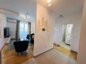 - Stan je potpuno i moderno opremljen sa novim namještajem i uređajima (mašina za veš i sušilica, mašina za suđe, mikrovalna, nutri bulet, friteza...), tako da budući stanar treba da ponese samo lične stvari